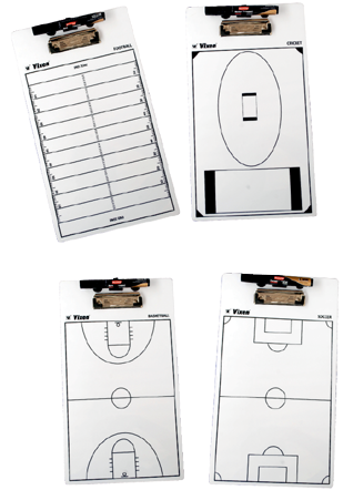 These clip boards are ideal for illustrating field position, game instructions etc. to players. Court drawing is printed on one side and other side is plain for writing remarks. This is made of 4mm acrylic sheet and has an easy wipe surface. Includes 1 marker pen. Available for all games. Size : 9 * 16 inch.