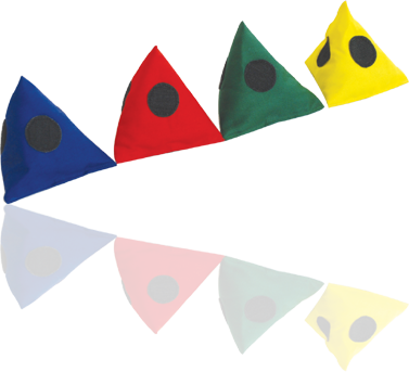 Pyramid shape bean bag, made of cotton cloth. Each side has velcro stitched on it.