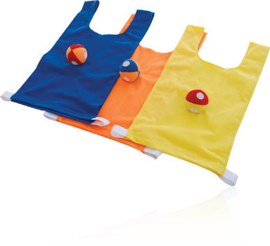 The bib is made of a special fabric. Avelcro ball is supplied with the bib, that sticks on the when you hit on it.