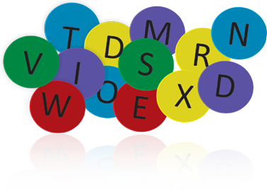 Rubber spots with alphabets printed from A to Z Available in assorted colours & 26 pc. sets. Code: 6008