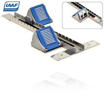 This starting block has a centre rail made of 75mm heavy duty slotted aluminium channel with thick ribs to insert anchor plates for better ground stability. Easy start is ensured because of extra broad paddles. Code : 4098