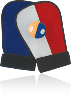 Made of fabric with velcro stitched on one side and an adjustable strap for the wrist. Comes with a velcro ball that sticks on the mitt when you hit on it. This game helps improve hand & eye coordination. Code: 6046