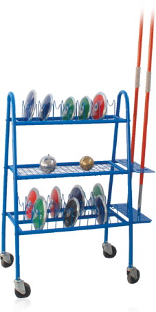 Made of steel pipe, this cart can carry 12 javelins, 12 shots & 30 discus with ease. Enabled with heavy duty wheels with locking device. Can be folded for easy storage, transport & carriage. Code : 3088